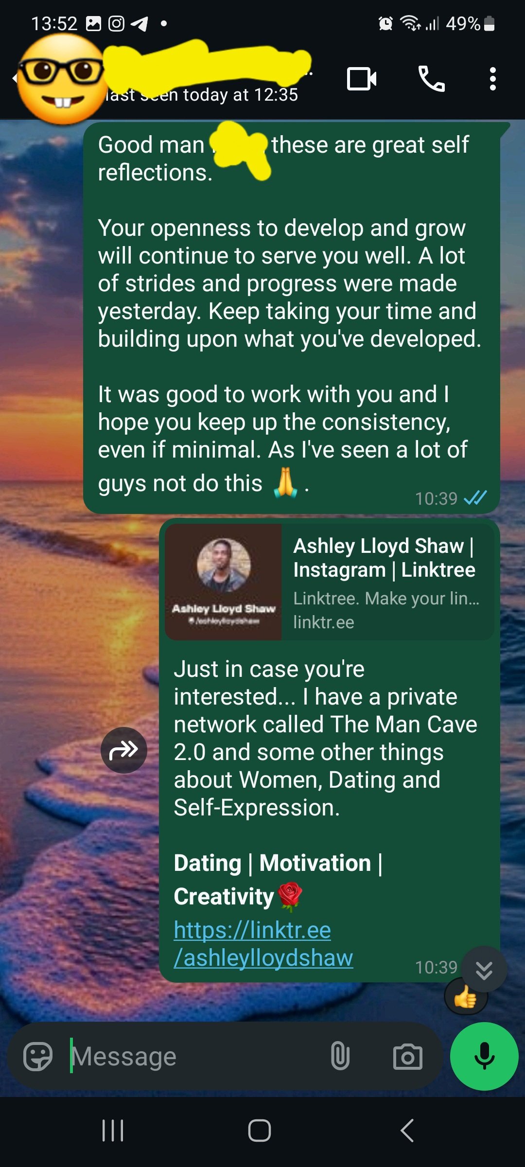 “The session with you genuinely blew my mind. I couldn’t sleep until 4 or 5am — my mind was racing. I felt free from the chains that had held me back my entire life. It got emotional... so many internal realisations hit me at once. I approached 18 women that day, and I couldn’t stop laughing in disbelief. But honestly, it wasn’t just about women — it was about something much deeper. Thank you, Ashley. That session was life-changing.”